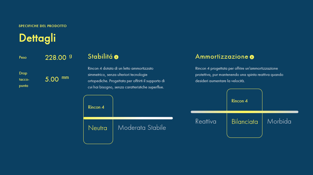 La suola resistente con disposizione modulare e la calzata che avvolge perfettamente il piede permettono a questa sneaker di durare più a lungo, senza aggiungere peso superfluo. Scegli le Hoka Rincon 4 per le tue corse quotidiane.